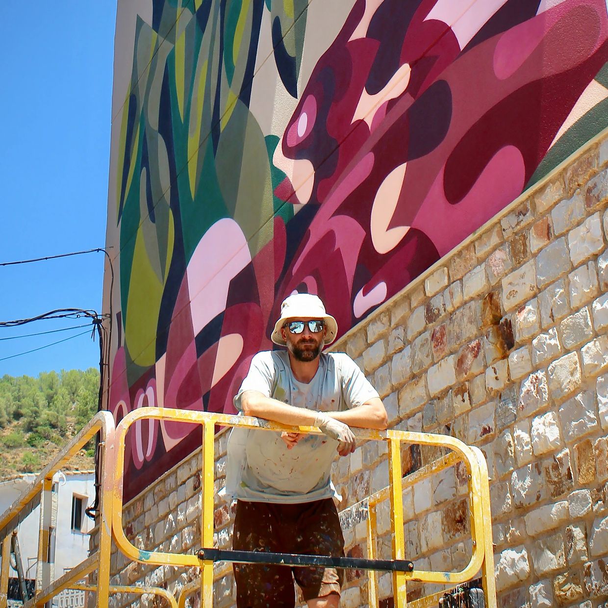 His mystical surreal figures and abstracted sceneries haunt the urban landscape over four continents, clambering up the side of tall buildings & alley-ways - Offering the urban environment an unique perspective, whilst opening dialogue with the viewer in context with the surroundings.